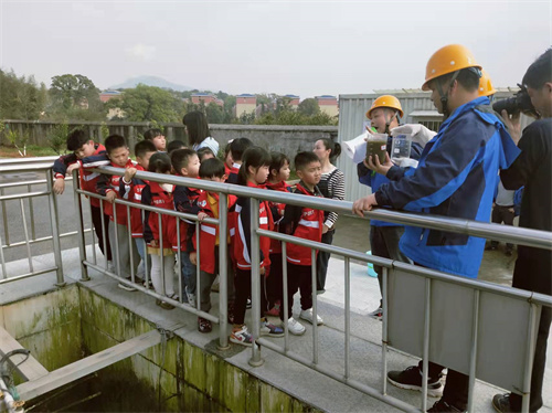 在參觀生物處理池(氧化溝)時(shí),講解員從池中提取污水給小朋友參觀,不少小朋友好奇問(wèn)到“水為什么這么臟?” 講解員解答到:“生活用水、工業(yè)用水會(huì)使清水受到污染,而污水排放又會(huì)使江河湖泊里的水受污染變臟,人們接觸或者喝臟水,就很可能生病甚至中毒、死亡”。走到進(jìn)出水口時(shí),講解員又現(xiàn)場(chǎng)提取進(jìn)廠(chǎng)水、出廠(chǎng)水向小朋友們進(jìn)行對(duì)比展示,小朋友們直觀看到了污水處理的效果,連說(shuō)“太神奇”。