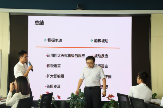 培訓(xùn)期間,馮南石講師通過華為、中興、騰訊等具體案例分析,自身經(jīng)歷分享、剖析,現(xiàn)場(chǎng)問答互動(dòng)、視頻、做手指操、小組積分、冠軍組發(fā)放獎(jiǎng)品等方式,全面、系統(tǒng)、深刻地講授了養(yǎng)成高效能人士的七個(gè)習(xí)慣,通過改變自我習(xí)慣不斷提高快速解決問題的能力?,F(xiàn)場(chǎng)氛圍輕松和諧,學(xué)員熱情高漲,聚精會(huì)神聆聽講課內(nèi)容,積極主動(dòng)參與小組討論、答題、項(xiàng)目活動(dòng)。